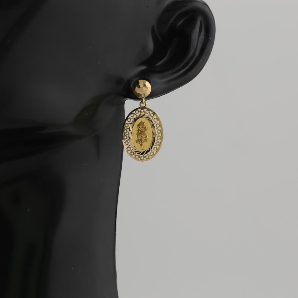 حلق ذهب بيضاوي وردة سبيكة - عيار 21